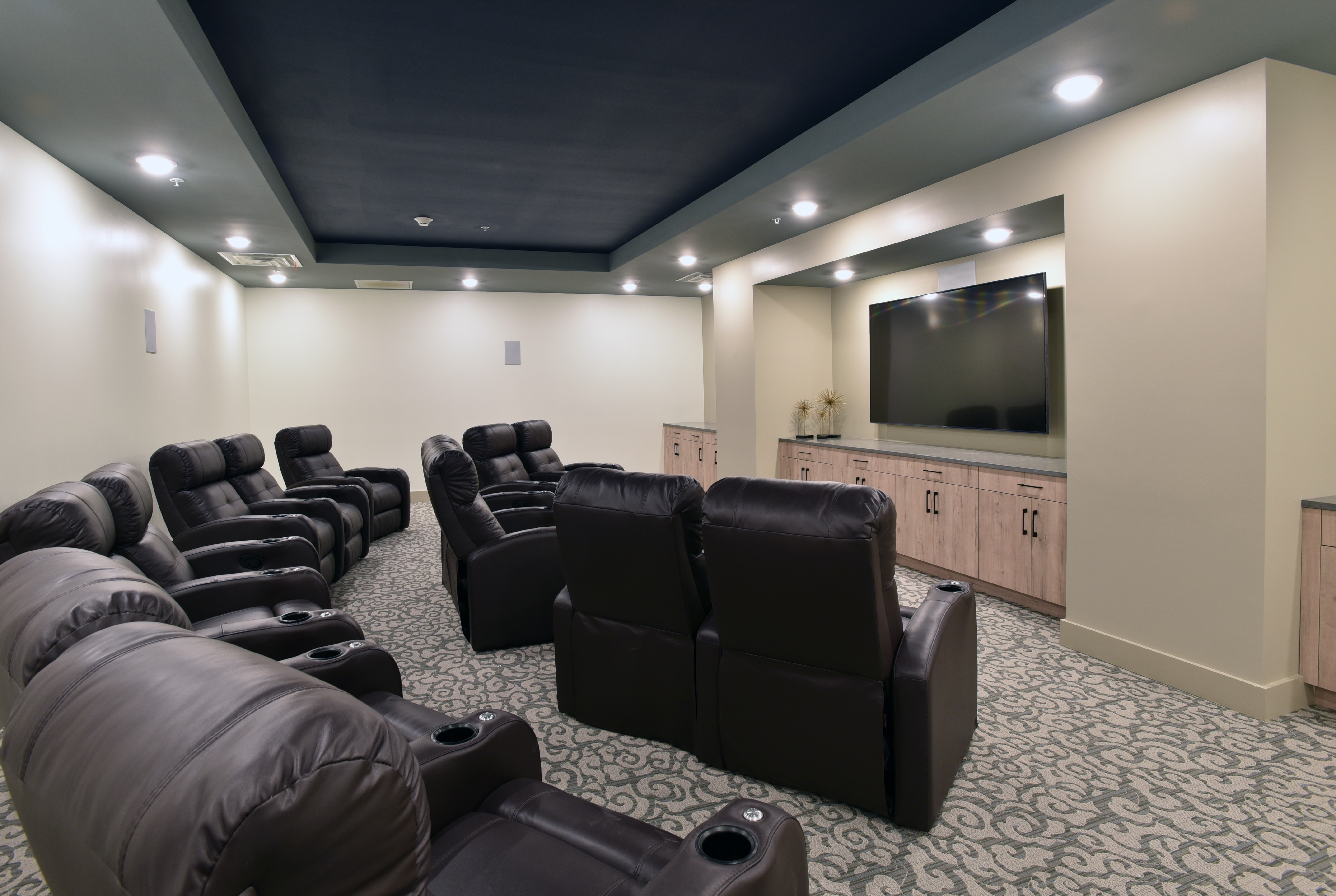 Theater Room – Enjoy big-screen sights and sounds in our state-of-the-art theater room. Whether it’s a movie night, a virtual bowling tournament, or watching the big game—the theater room brings any event to life.